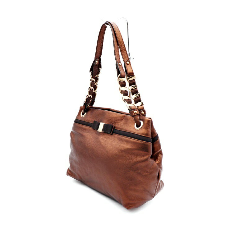 美品 Salvatore Ferragamo サルヴァトーレフェラガモ ヴァラリボン ショルダーバッグ トートバッグ レザー ブロンズ【本物保証】【中古】