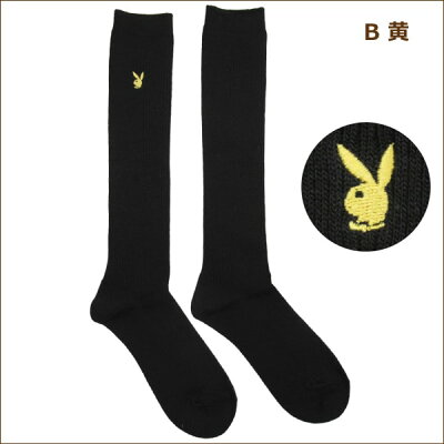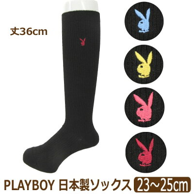 靴下 日本製 プレイボーイ ハイソックス 23〜25cm 36cm丈 黒 A水 B黄 C桃 D赤 k0446 PLAYBOY メール便は送料無料♪